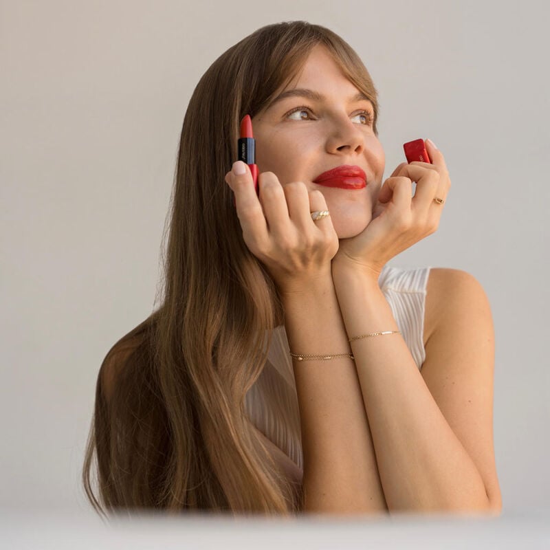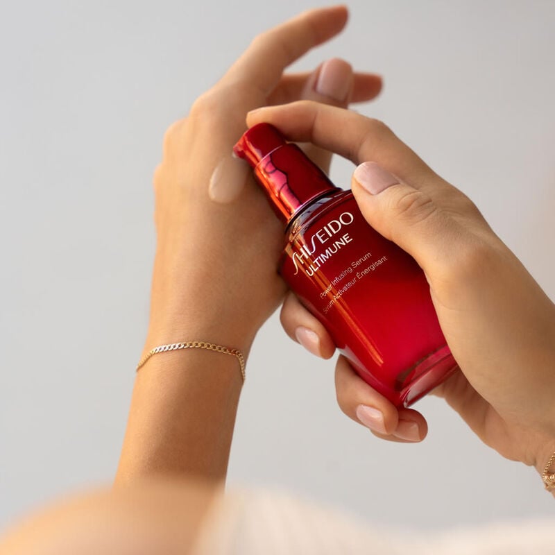 Faites des économies. Profitez de 20 % de rabais sur l’offre groupée Zhanna Red x Shiseido comprenant le sérum Ultimune Power Infusing 50 ml, la crème hydratante Essential Energy, le bâton de protection solaire transparent FPS50+ et le rouge à lèvres gel TechnoSatin (teinte 415 - Short Circuit). Valeur de 300 $ et plus.